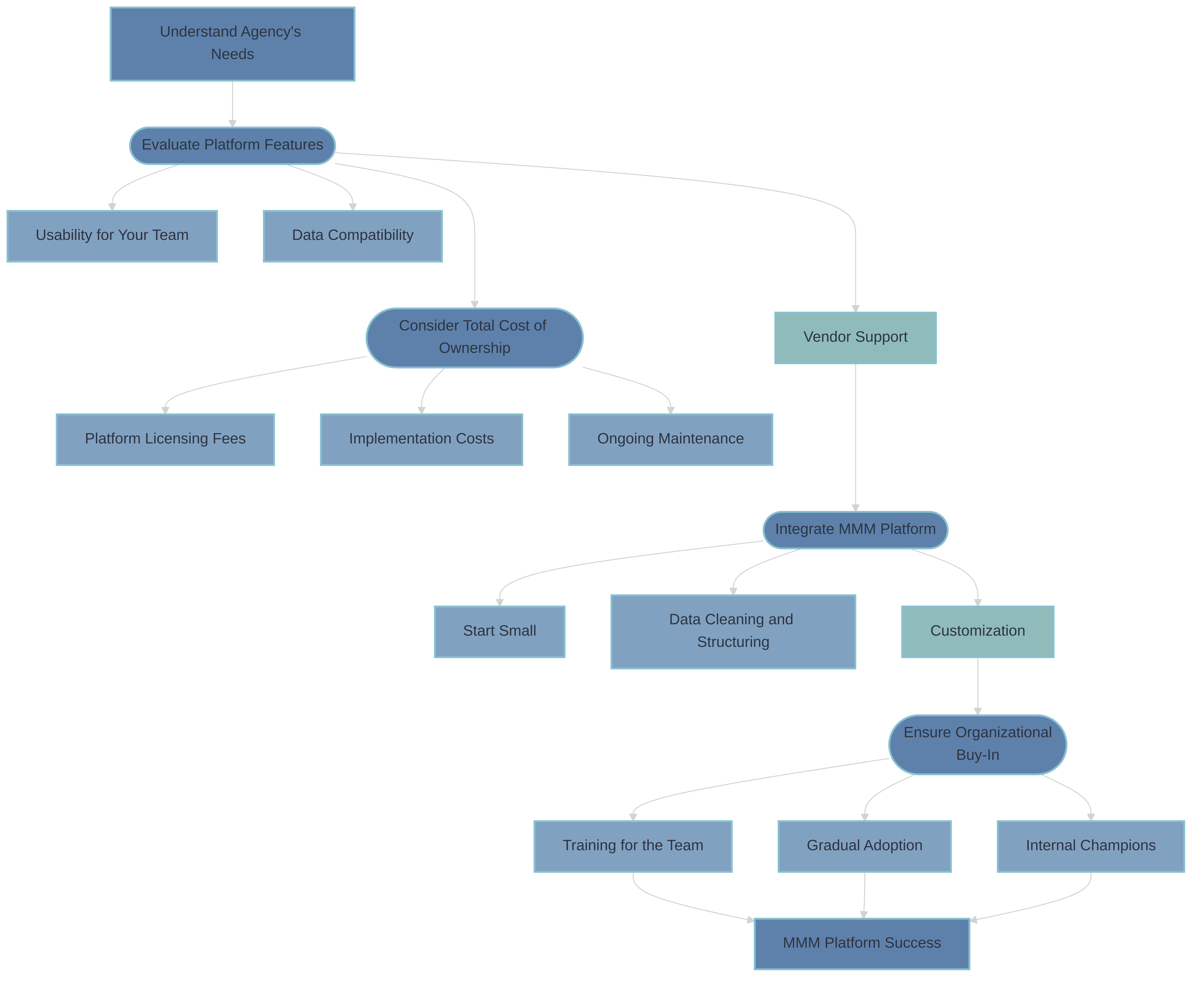 Once your agency’s needs are clear, the next step is to evaluate potential platforms. While it’s tempting to focus solely on cutting-edge features like machine learning algorithms (Gong et al. 2024) or predictive capabilities, there are other factors that are equally, if not more, important.